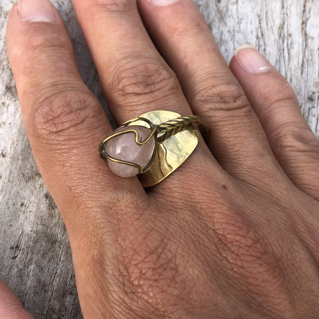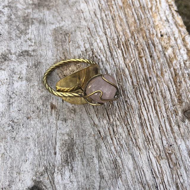 Bague faite à partir d’une cuillère à moka en laiton doré et pierre semi-précieuse.
