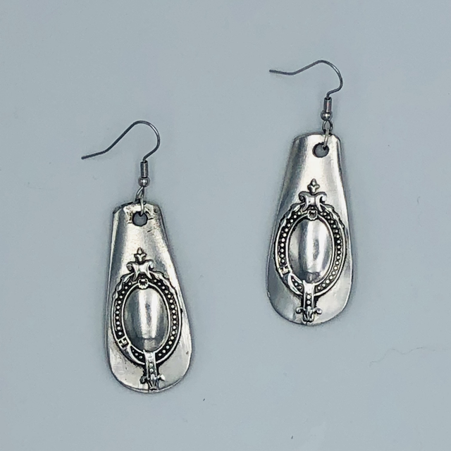 Boucles d’oreilles créées à partir de couverts argentés.